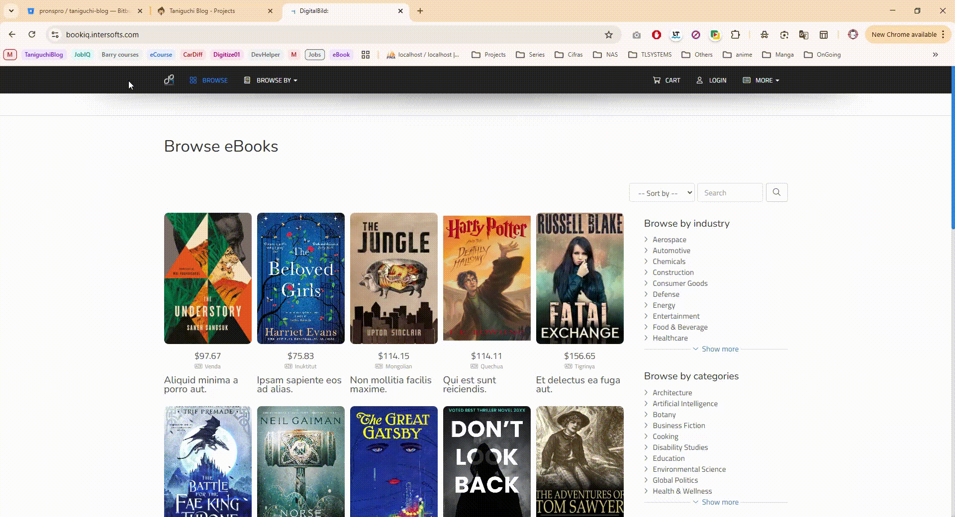 Digital bookstore, featuring search, previews, payment gateway integration, and user accounts. It also provides a platform for authors to sell their books and, CMS features.